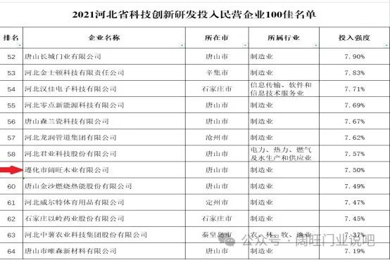 2021年入選河北省科科技創(chuàng)新研發(fā)投入民營企業(yè)100佳名單